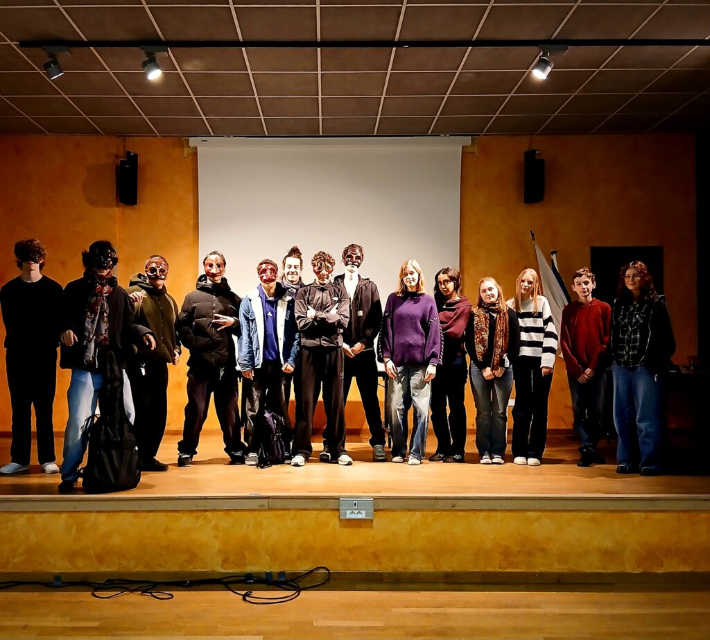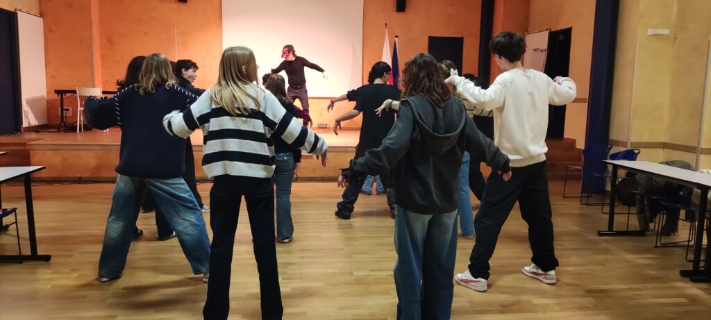 Gli alunni della classe Seconde insieme agli studenti della Troisième del Collège Frankin, hanno avuto l’opportunità di partecipare ad un progetto di teatro sulla Commedia dell’arte, promosso dal Ministero degli Affari esteri in collaborazione con il Liceo Montebello. A condurre l’atelier è stato Stefano Pepe Mauro, attore e professionista teatrale, che ha guidato gli studenti a scoprire la storia e i personaggi tipici della Commedia dell’Arte, da Pulcinella a Colombina e apprendere le basi delle tecniche teatrali. Al termine della giornata, gli alunni hanno potuto improvvisare una breve rappresentazione che li ha aiutati ad esprimere le loro emozioni attraverso l’incarnazione di vari personaggi.